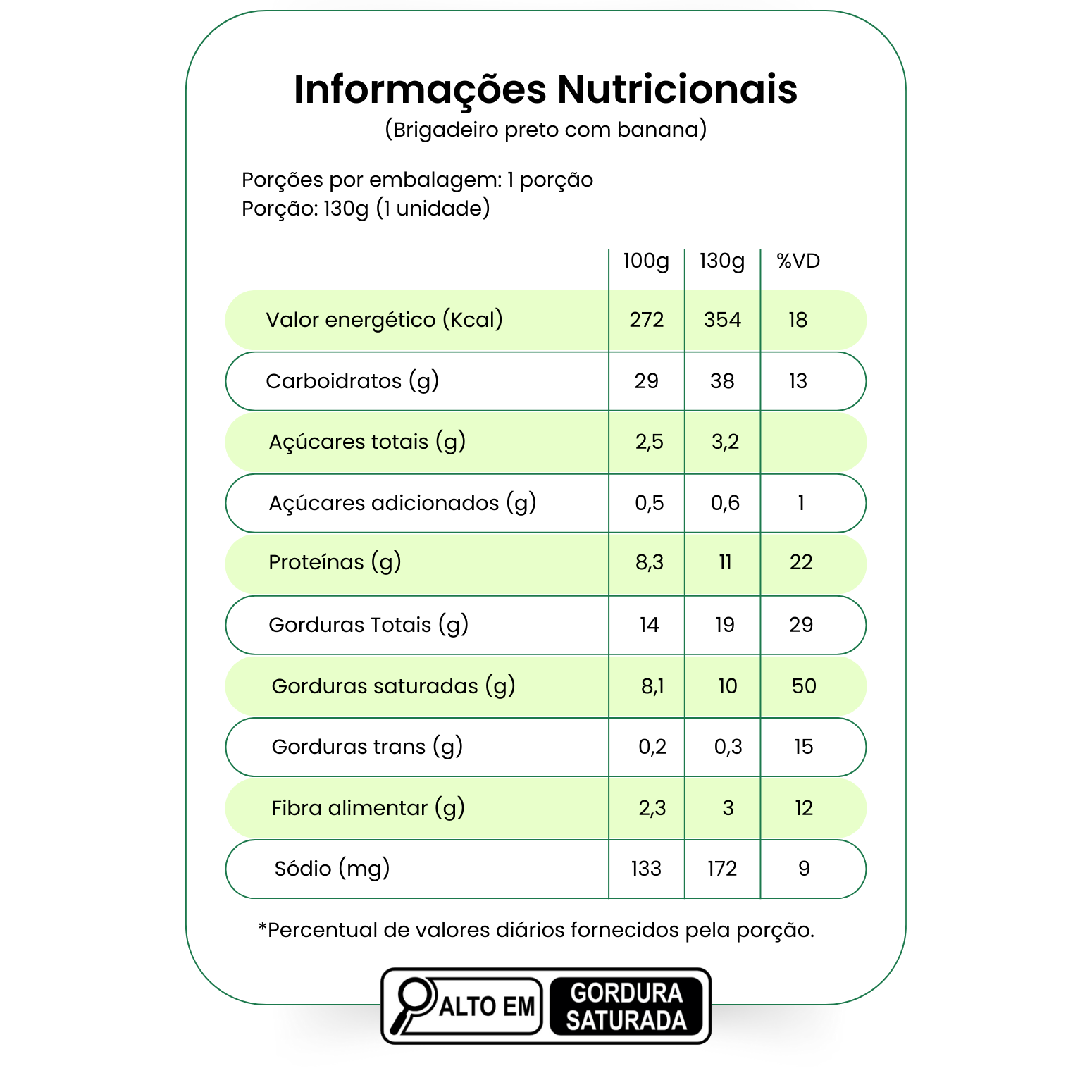 INGREDIENTES: Leite integral, creme culinário, leite em pó, chocolate em barra preto, cacau em pó, banana caturra, estévia, emustab e pectina.