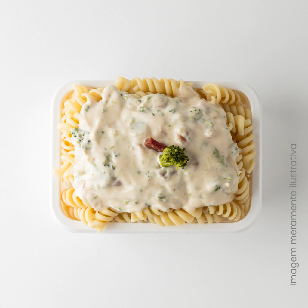 Refeição feita com leite, creme culinário, manteiga, farinha de trigo e queijo parmesão. Brócolis no ponto certo e bacon salteado trazendo textura e um sabor marcante. Finalizado com mussarela ralada que une tudo numa cremosidade irresistível. Prato que aquece e satisfaz.