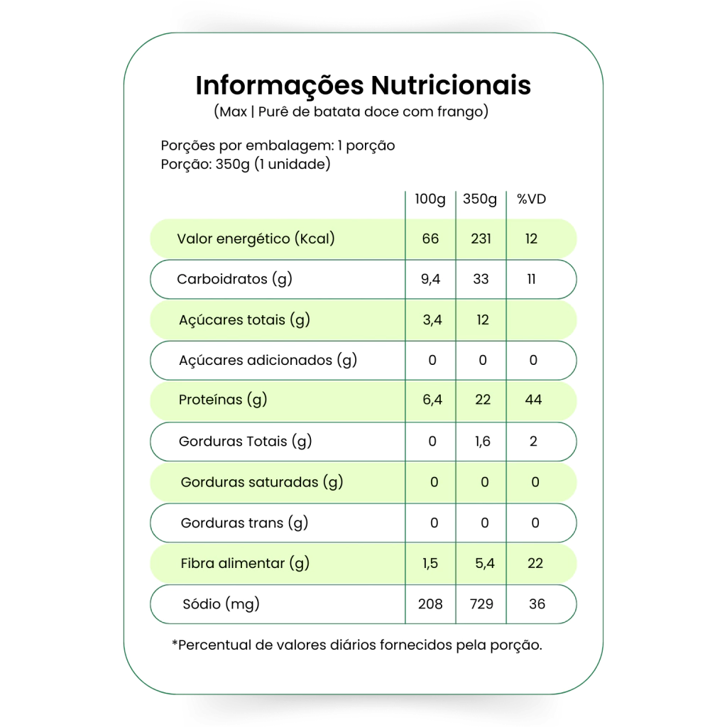 Muito usada por atletas que buscam o ganho de massa corpórea, a batata doce vai além do ganho de massa, auxiliando na perda de peso, desintoxicação e desinflamação do organismo, entre outros, e aliada à proteína do frango, fica ainda melhor! O Purê de Batata Doce com Frango é uma refeição que fornece energia durante todo o treino.